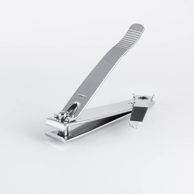 - Attached, swing-out, metal file smoothes rough edges