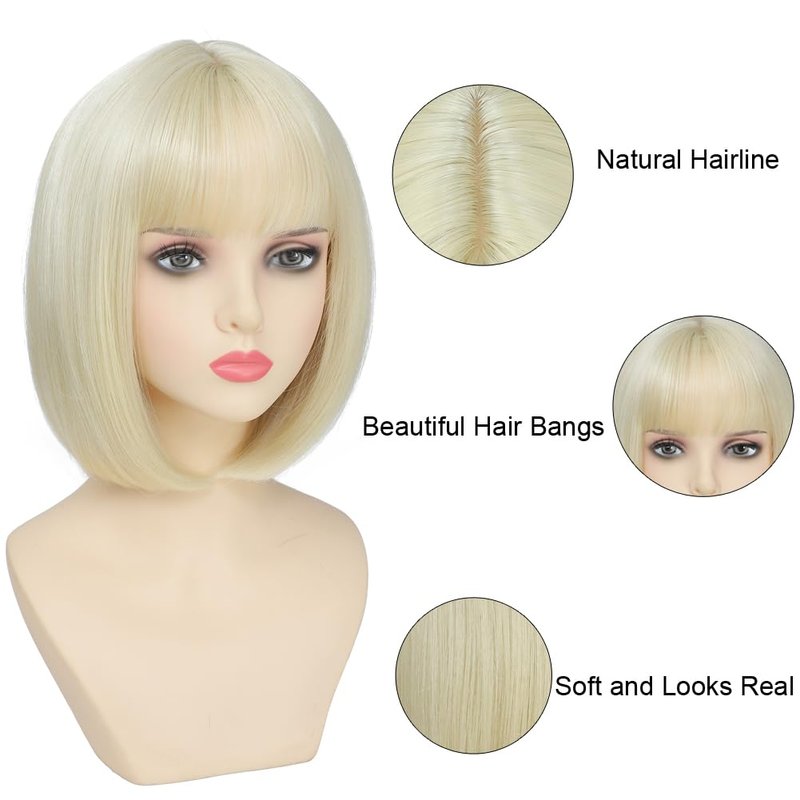 - 【 Bob Wig Material】 12 inch Short Synthetic bob wig with bangs, Tangle-Free, Shedding-Free, Breathable and comfortable,