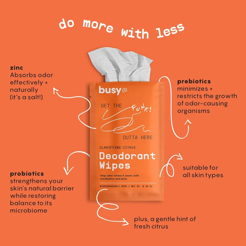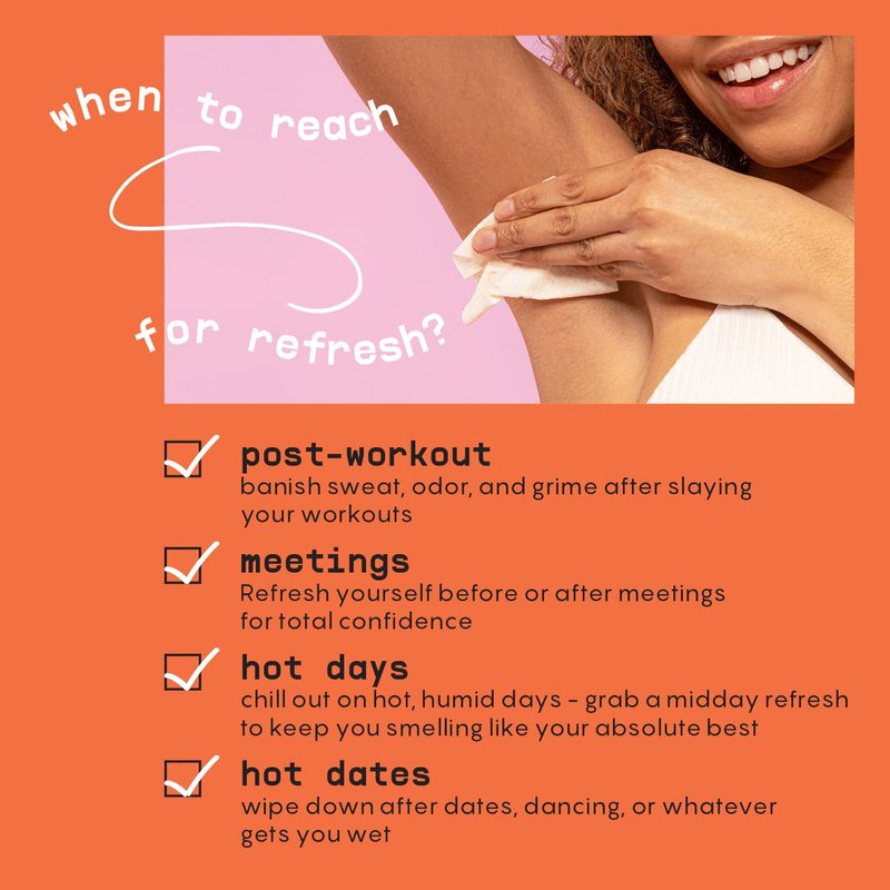 - STAY FRESH AND FRAGRANT - Infused with a light, refreshing scent, our Deodorant Wipes keep you smelling great all day, without overpowering your natural aroma.