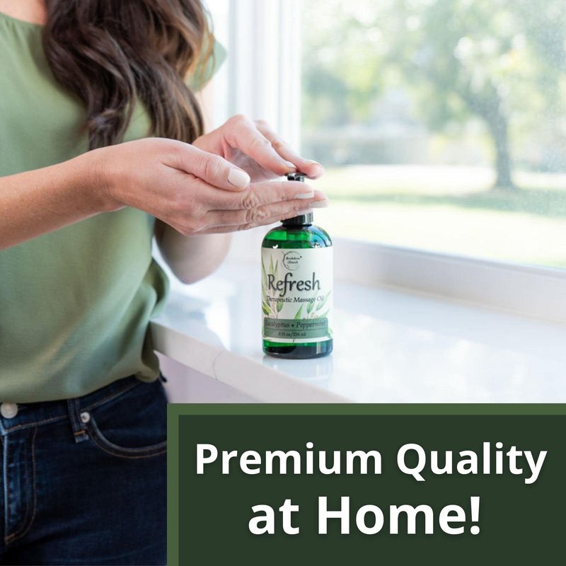 - Great for Professional Use! SET YOURSELF APART by giving your clients a massage they WON’T FORGET! Keep them coming back with Refresh Therapeutic Massage Oil. Ideal for use for all types of massage therapy including hot stone massage, deep tissue & more!