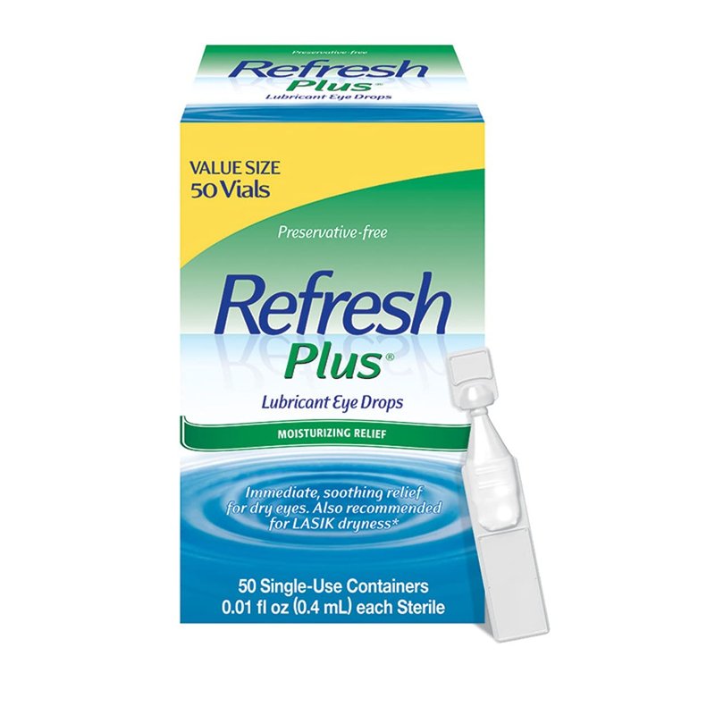 Refresh Plus Lubricant Eye Drops, Preservative-Free, 0.01 Fl Oz Single-Use Containers, 50 Count, Packaging May Vary
