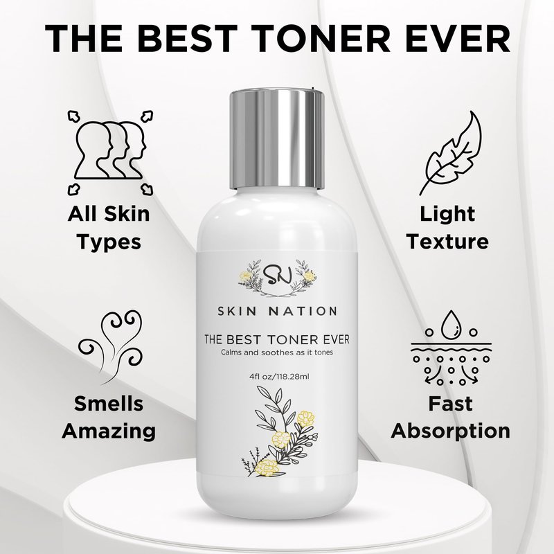 Discover the Magic of Skin Nation's Best Toner Ever When it comes to effective skincare, a well-balanced routine is essential. Among the many steps, using a toner is often overlooked, but it can make a significant difference in your skin care regimen. Skin Nation's face toner is a versatile toner for face, designed to cater to a wide range of skin types and concerns and this facial toner is more than just a facial cleanser; it's a skincare essential. Let's see how: Rose Water Elegance Rosewater has been revered in skincare for its soothing and balancing properties. Skin Nation's Rose water toner helps tone and refresh your skin. It's particularly beneficial for those with sensitive skin. Aloe Vera's Healing Touch Aloe vera is known for its ability to hydrate and soothe the skin and our skin toner features Aloe Vera, making it a perfect choice for those seeking an extra layer of moisture in their skincare routine, making it a valuable addition to your facial skincare products. Pore Minimizer for Face If you're troubled by enlarged pores, we can help. It serves as a pore minimizer, working to refine and tighten your pores. With regular use, this toner plus pore cleaner can give your skin a smoother, more even texture. Hydrating Toner Hydration is key to maintaining healthy and youthful-looking skin. This toner functions as a hydrating toner, ensuring your skin remains adequately moisturized throughout the day. Cleanser and Toner in One As a cleanser, it helps remove impurities, while it balances your skin's pH levels and preps your skin for the next steps in your skincare routine. Astringent for Face If you have oily skin and are in search of an effective astringent, our toner for oily skin or dry skin is a great choice. It helps control excess oil production and keeps your skin looking fresh throughout the day. In conclusion, Skin Nation's Best Toner Ever is a wonderful toner for women or men and of all skin types.