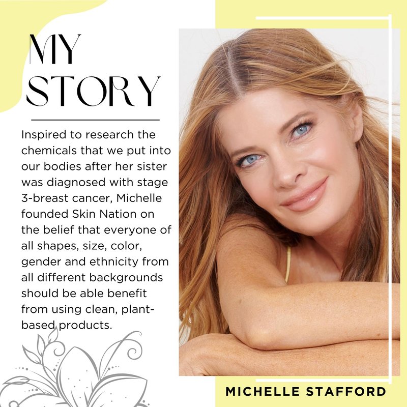 - EXCEPTIONAL SKIN CARE: As seen on FOX, ABC, NBC and CBS, Michelle Stafford brings you Skin Nation, a handcrafted skincare line made for you; with absolutely no chemicals, fillers, binders, petroleum or parabens; 100% vegan, cruelty free, made in the USA