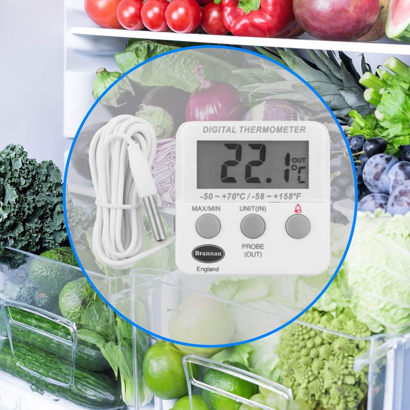 - ESSENTIAL REFRIGERATOR THERMOMETER - This digital refrigerator thermometer and has a built-in fridge and freezer alarm alert when temperatures drop. The thermometer is ideal for use in a fridge or freezer.