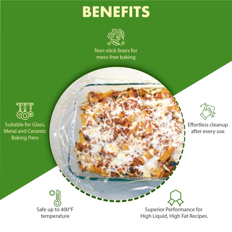 - EFFORTLESS CLEANUP: No more scrubbing and soaking- Even after making cheesy, gooey baked casseroles or brownies, these liners lift right out of the pan and leave your baking dish clean and ready for the next use
