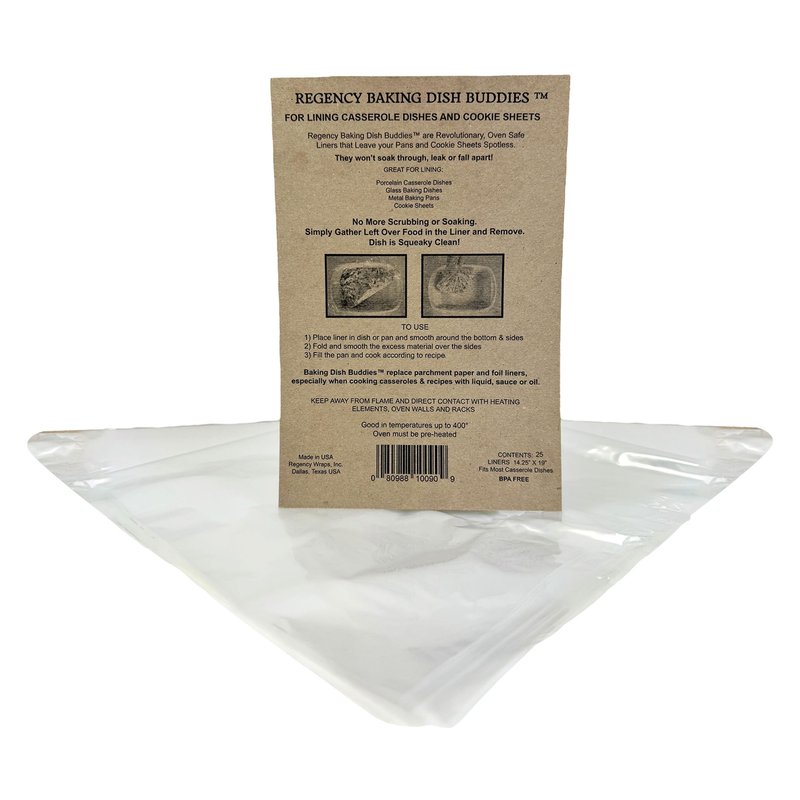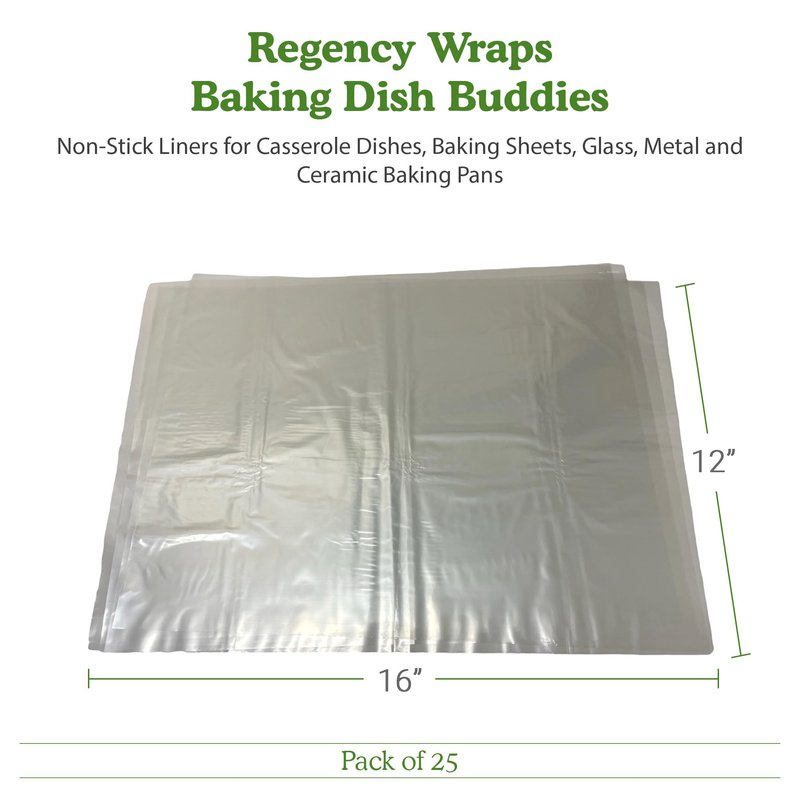Regency Wraps Baking Dish Buddies, Non-Stick Liners For Mess-Free Casseroles Dishes, Baking Sheets, glass and metal baking pans, Clear, 14.5" x 19" (Pack of 25)