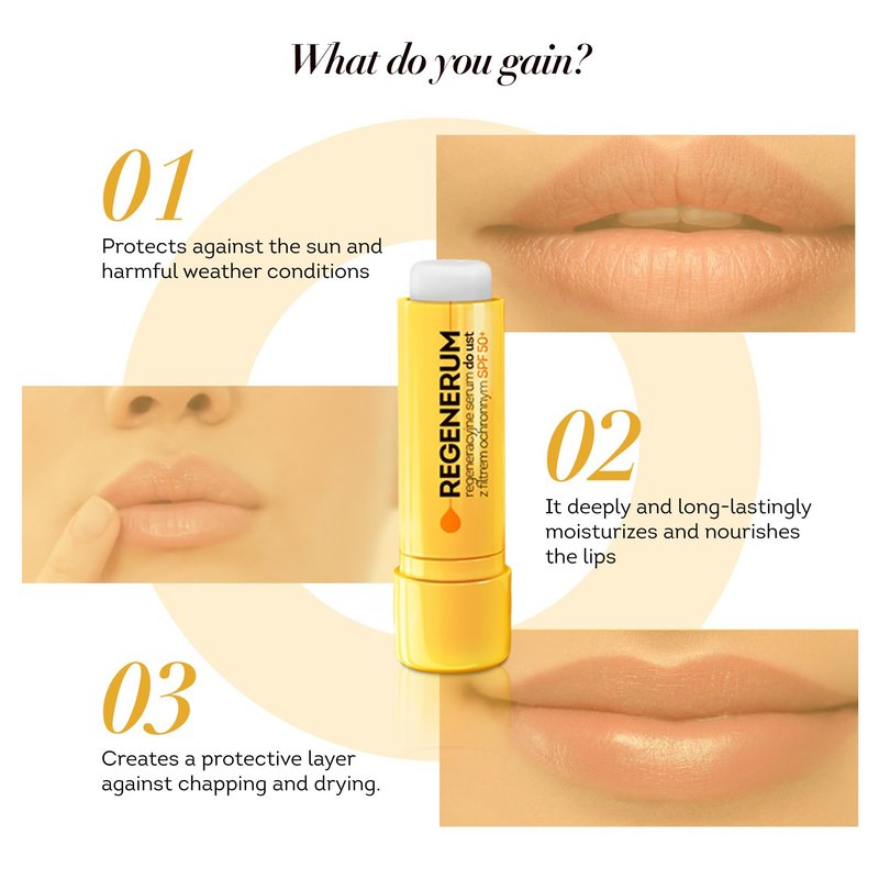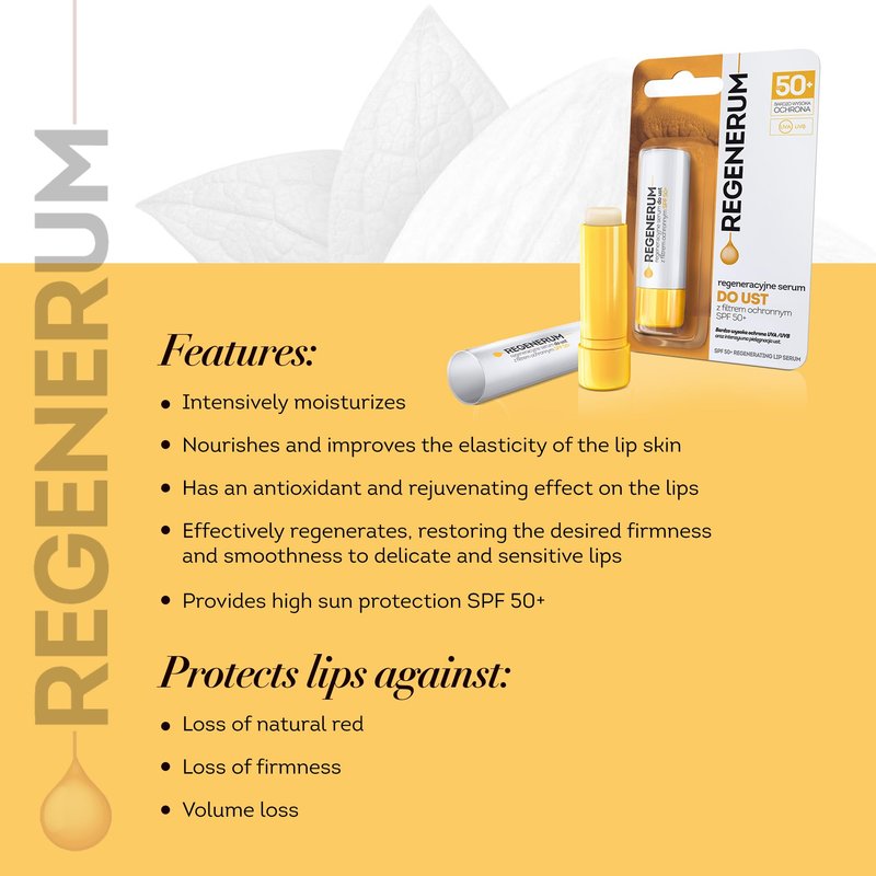 Regenerum SPF 50+ Regenerating Lip Serum - Lip Sunscreen and Conditioner | Hydrating, Nourishing Lip Care - Vitamin E Formula for Smooth, Plump Lips | Prevents Dryness, Chapping, and Pigment Loss - 5g