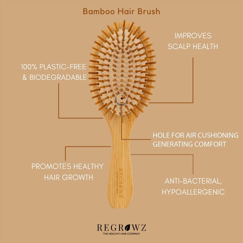 Regrowz Bamboo Paddle Hair Brush for Women & Men - Natural Wooden Brush to Detangle Hair & Reduce Hair Breakage - Scalp Massage, Perfect Hair Care Tool
