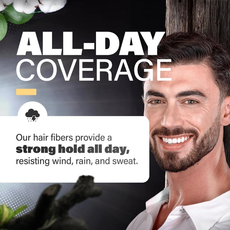 - SUPERIOR ALL DAY HOLD - Our hair fibers are designed to withstand wind, rain, and sweat, ensuring a firm strong hold throughout the day. Unlike other hair fiber spray, our hair powder for men is No mess, no clumps, no staining of clothes, skin, or pillowcases. You can rest assured that your hair will look great all day long in all conditions! Our product is not just a hair filler; it's your key to a more vibrant, fuller, and natural-looking mane.
