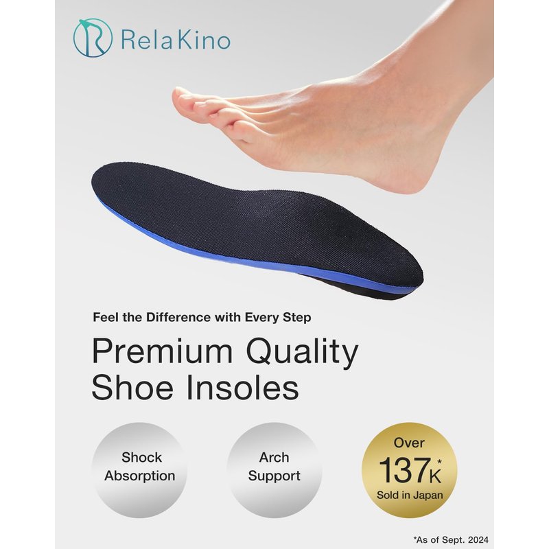 Experience unparalleled comfort and support with Rela Kino Premium Quality Gel Shoe Insoles from Japan, designed for high arch support, perfect for walking, golf, and everyday use; our gel shoe inserts provide the ultimate cushioning for both men and women, featuring gel inserts that enhance your sneaker insoles, ensuring your feet feel great all day long; whether you're looking for shoe inserts & insoles for women or foot insoles for men, our versatile unisex sole inserts are the best insoles for standing all day, offering exceptional comfort and support; enjoy the benefits of our gel inserts for women's shoes and shoe cushions for men, with cushion insoles that adapt to your foot shape, making them ideal for anyone seeking foot inserts for women or foot inserts for men; choose Fulton insoles women or sneaker insoles men for a tailored fit, and experience the difference with our premium quality gel insoles, the best insoles for women standing all day, ensuring you stay comfortable and energized throughout your day.