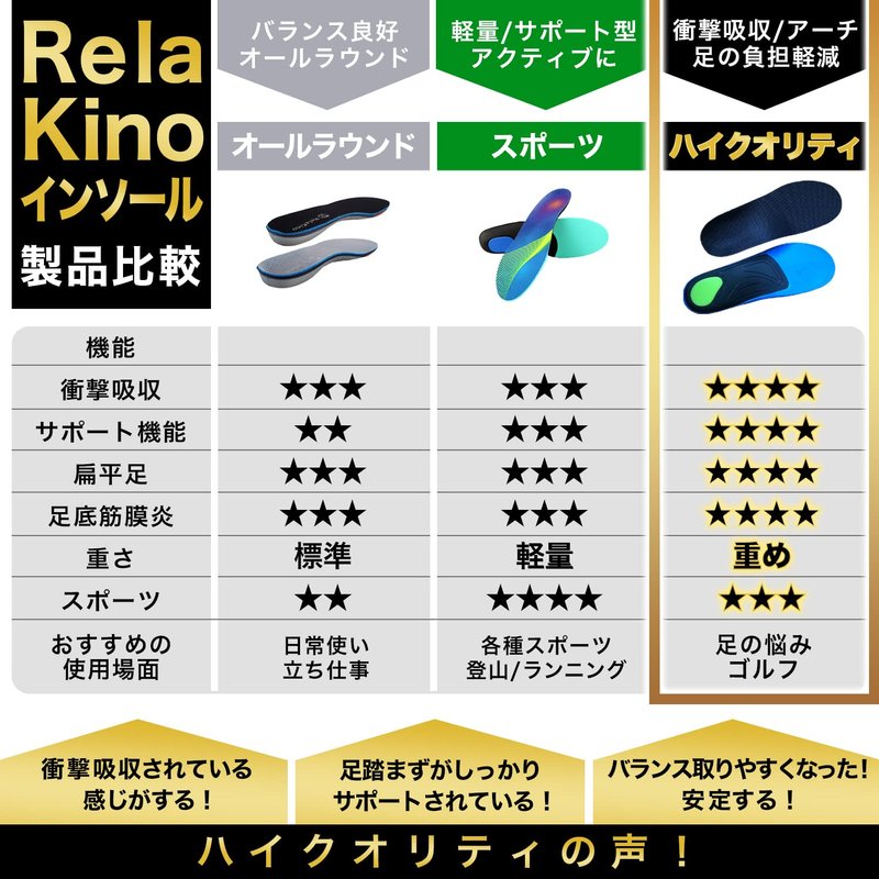 Rela Kino Premium Quality Gel Shoe Insoles from Japan, Shock Absorption, High Arch Support, Walking, Golf Insoles Men, Shoe Inserts Women, Shoe Insoles Women, Shoe Inserts Men, Unisex Sole Inserts, M