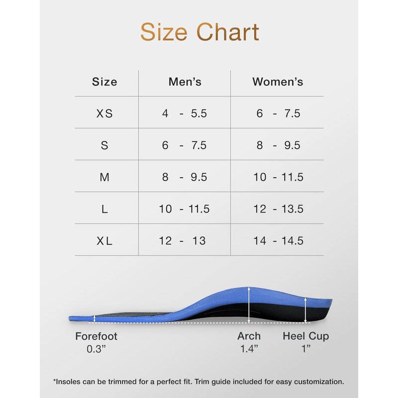 - Support for Foot Issues: Designed for flat feet, plantar fasciitis, and bunions, these shoe inserts & insoles offer arch support and shock absorption. The best insoles for standing all day, whether you need foot insoles for men or women's insoles.
