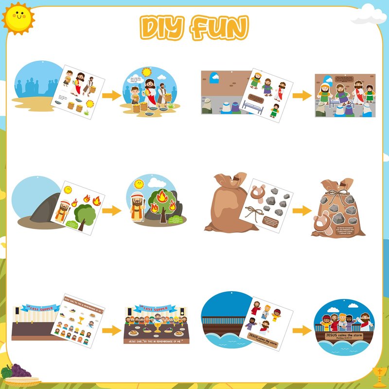 - Versatile Application: Our religious Sunday school sticker crafts can be applied as DIY games for various craft activities in school classrooms or preschool children's homes. Also can be applied to religious theme party decor, you can stick them on the window, door, gift box, Christmas, Easter greeting cards, books, etc.