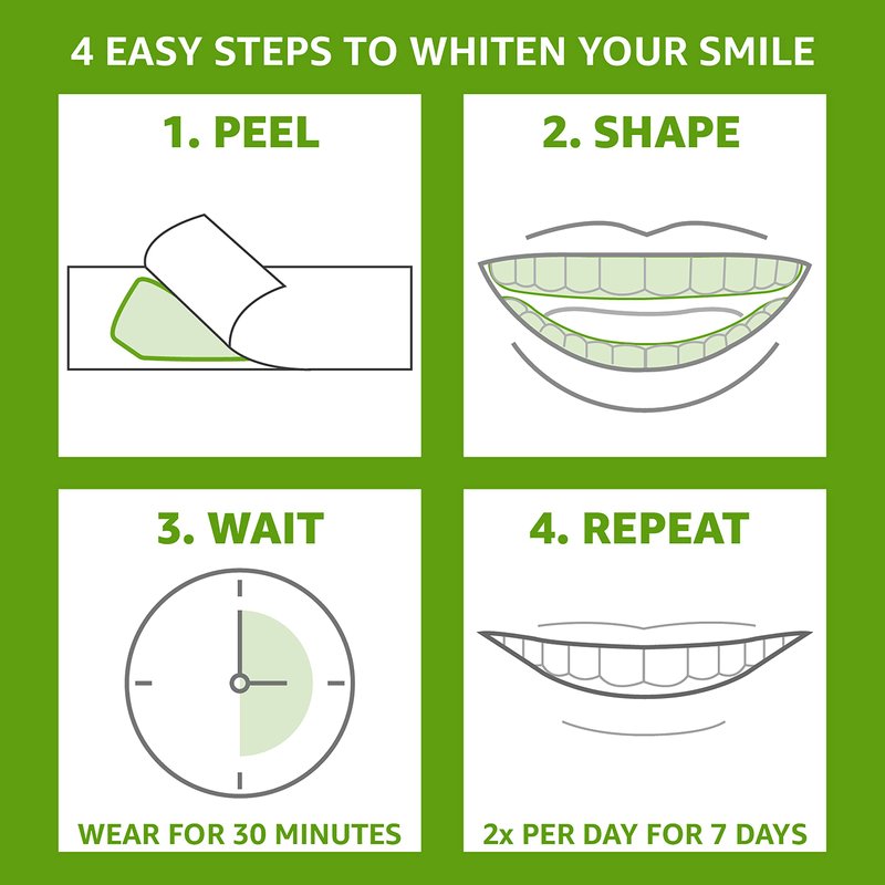 - Directions: Enjoy whiter teeth in just 7 days. Simply peel, shape, wait, and repeat. For optimal results, use twice daily for 30 minute
