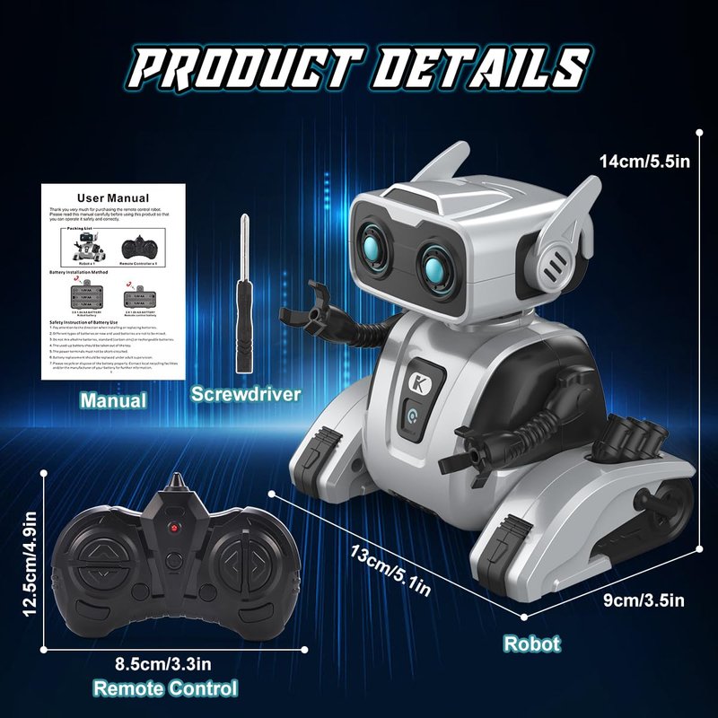 - GREAT REMOTE CONTROL ROBOT TOYS GIFTS:This remote control robot comes in beautiful packaging. The box contains a robot, a remote control, a screwdriver, and an instruction manual. It is a good choice for children's Easter, Children's Day, Halloween, and Christmas gifts.