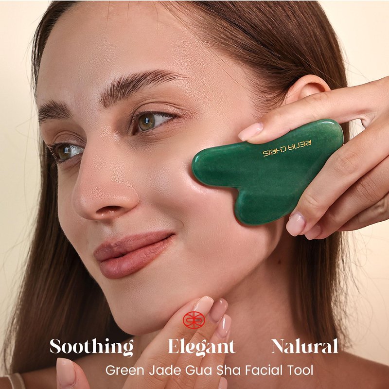 - EXCELLENT MATERIALS: Rena Chris gua sha facial tool is handcrafted from 100% natural jade stone from Brazil; Green jade symbolizes longevity and well-being; it has therapeutic properties that can influence our health to encourage peace and tranquility