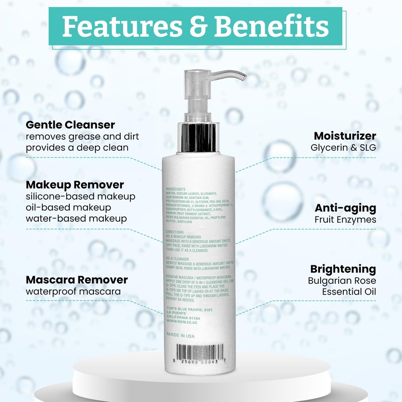 RENLEE® 3-in-1 Cleansing Gel with Rose Essential Oil Made in USA, Face Wash for Women & Men, Makeup Remover, Face Painting Remover, Perfect for Kids and Teens (10-12). Moisturize All Skin Types