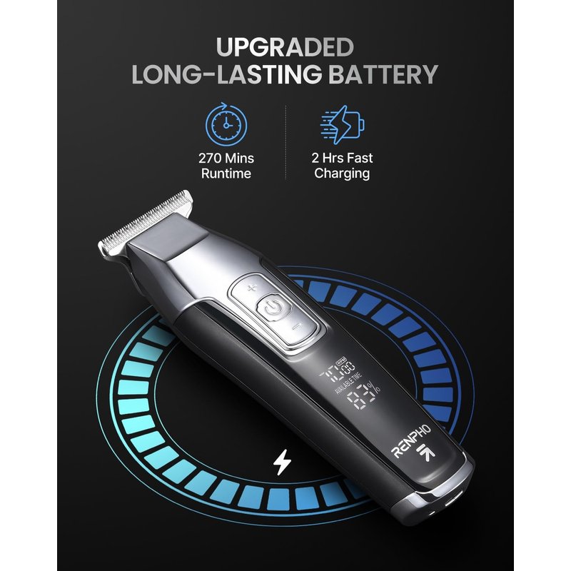 - Long-Lasting Battery for Worldwide Travel: With the long-lasting lithium battery, Renpho hair trimmer for men professional provides up to 270 mins of runtime after a single charge. The supported global voltage 100-240V makes the hair clipper ideal for travel.