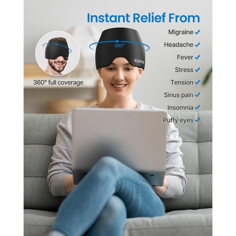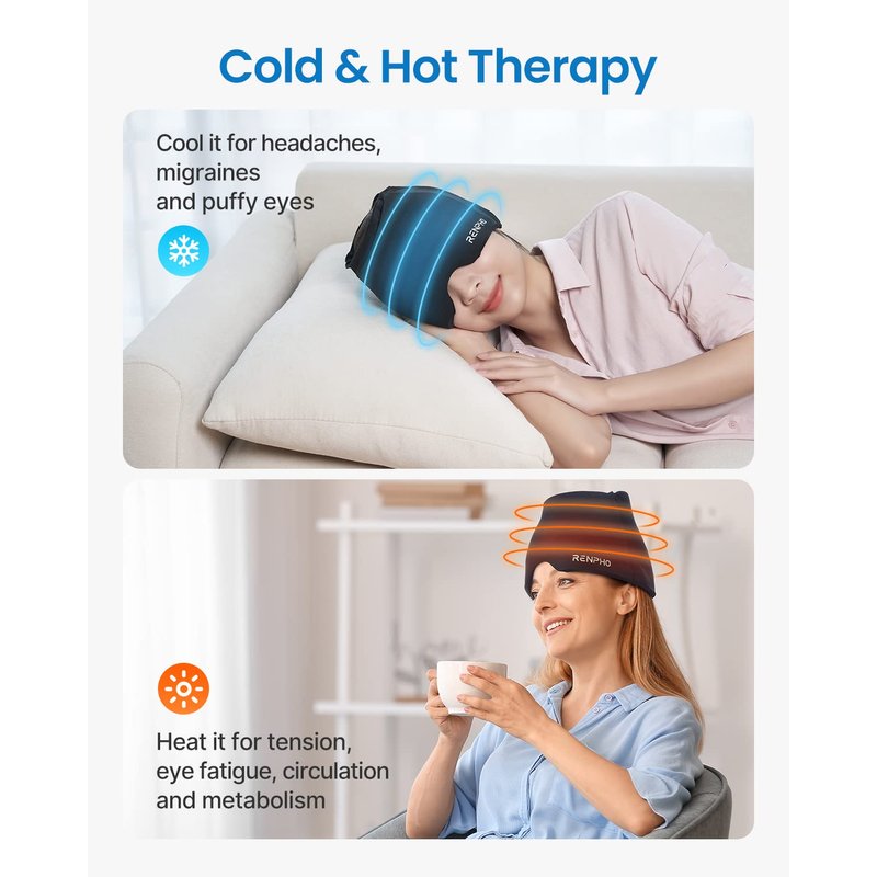 - 🎁Birthday Gifts & Reliable Customer Service - Renpho migraine relief cap is a good gift for migraine sufferers, help them feel good, sleep well and relax. Renpho is well-known for the highest quality products and the Best customer service team. Maybe the ice pack doesn't always work for everyone, if you have any problems in use, we can help you