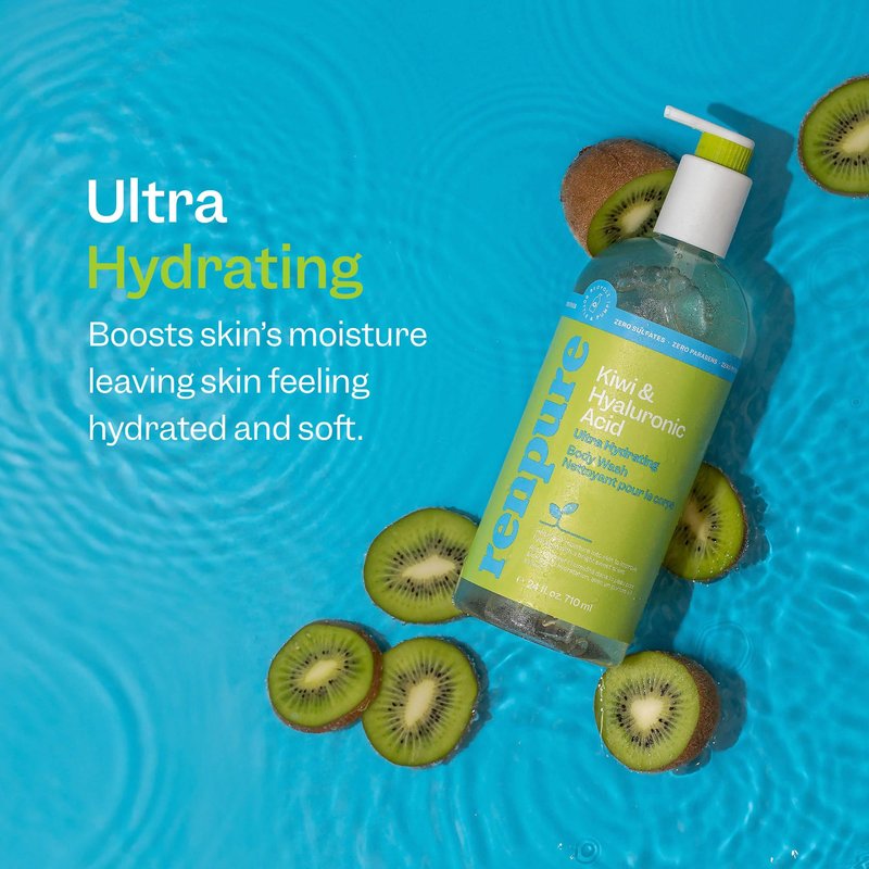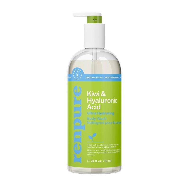 Renpure Kiwi and Hyaluronic Acid Ultra Hydrating Body Wash - Leaves Skin Moisturized - Rids Skin of Daily Grime - Gentle Formula - Dye and Paraben Free - Recyclable, Pump Bottle Design - 24 fl oz