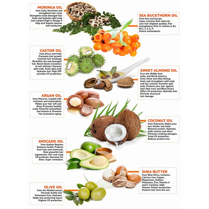 They are 9 of the most pure and powerful oils that can really restore your hair and bring it back to life and make your hair look so beautiful! What they all have in common is that they all will hydrate your hair Each one of them in its unique way but each of these oils offer much more benefits for your hair. First Detangle With your hair dry, gently detangle it with a brush, starting from the ends to the top Divide your hair in four or two equal sections (depending on the quantity of hair) Then Pour oil treatment onto the palm of your hand. Apply on each of the section of hair, starting from the ends to the roots. Comb your hair with a wide-tooth comb. Make sure all your hair is evenly applied. Roll the hair into a very loose bun and secure it loosely with a hair tie. Wait for an hour. Let your hair completely absorb the essential oils. Replenish it to the max. NOTE: (if your hair is very damaged, let it work for 2-3 hours) It’s recommended to wear a shower cap. Days with more time you can leave it on longer if you want. Now Shampoo Shampoo and rinse two or three times of with abundant lukewarm water. Repeat until the oils are completely removed from the hair. IMPORTANT: Avoid stripping hair natural oils and damaging hair again. Use shampoo sulfate free paraben free and sodium free. Towel Dry Minimize tangle and damage hair. Gently squeeze wet hair with the palm of your hands to string the water out, it’s easier to towel dry your hair when your hair is not soaked in water. NOTE: If you are in a hurry gently squeeze out the excess of water. And Finish With A Great Deep Conditioner / Infusion Apply a deep conditioner or infusion that could be used from the roots to the ends for 2-3 minutes. Rinse off with abundant water, preferably with cool water.