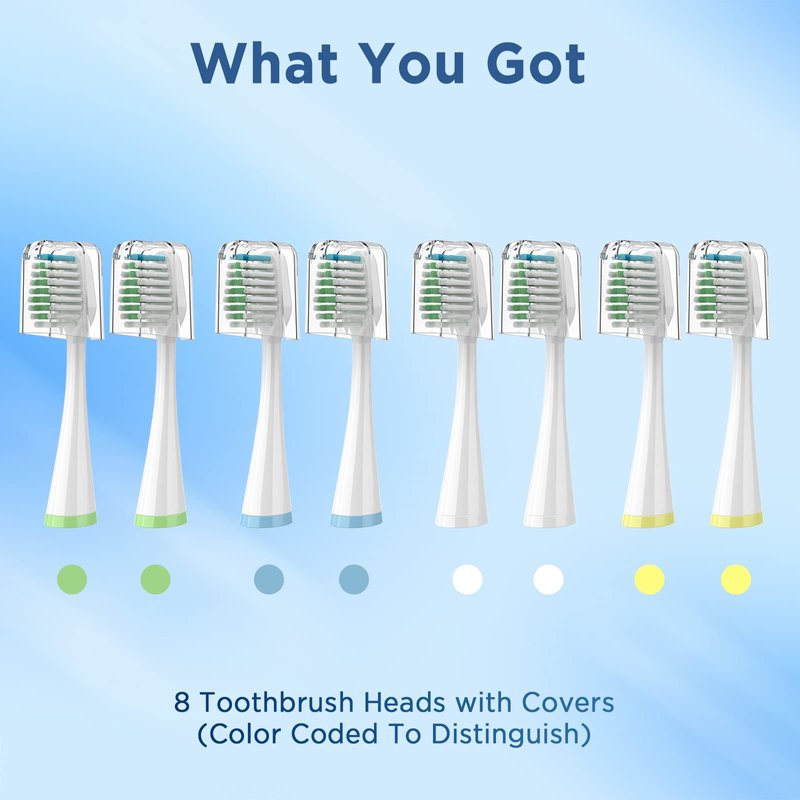 Replacement Brush Heads for Smile Bright Platinum Sonic Electric Toothbrush, Soft Bristles, 8-Pack, with Covers