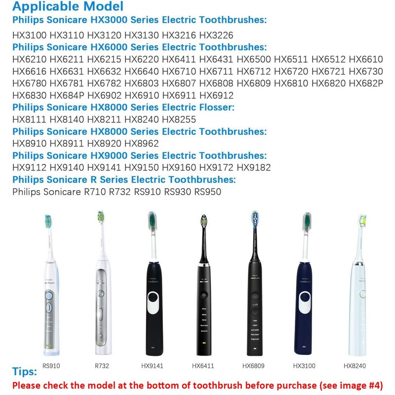 - 5. [Wide Compatibility] Compatible with Philips Sonicare electric toothbrush & Flosser models: HX3100 HX3110 HX3216 HX3226 HX6210 HX6220 HX6225 HX6231 HX6250 HX6263 HX6311 HX6320 HX6411 HX6431 HX6500 HX6511 HX6530 HX682P HX684P HX6902 HX6910 HX6911 HX6912 HX6920 HX6921 HX6930 HX6932 HX6933 HX6942 HX6950 HX6952 HX6962 HX6970 HX6972 HX6980 HX6992 HX6993 HX8111 HX8140 HX8211 HX8240 HX8255 HX8910 HX8911 HX8920 HX8962 HX9112 HX9140 HX9141 HX9150 HX9160 HX9172 HX9182 R710 R732 RS910 RS930 RS950