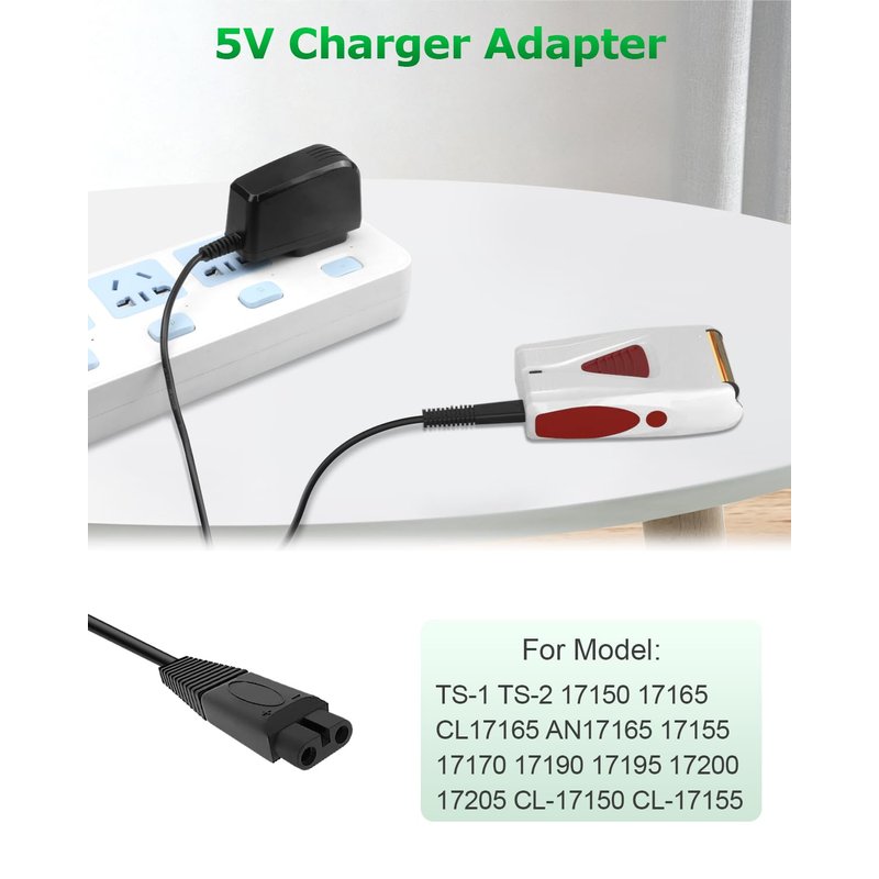 - 5V electric shaver charger ac adapter only compatible with Andis ProFoil TS-1 TS-2 17150 17165 CL-17165 AN-17165 CL17165 AN17165 ProFoil 17155 17170 17190 17195 17200 17205 CL-17150 CL-17155 CL-17200 ProFoil Lithium Pro Foil Shaver.
