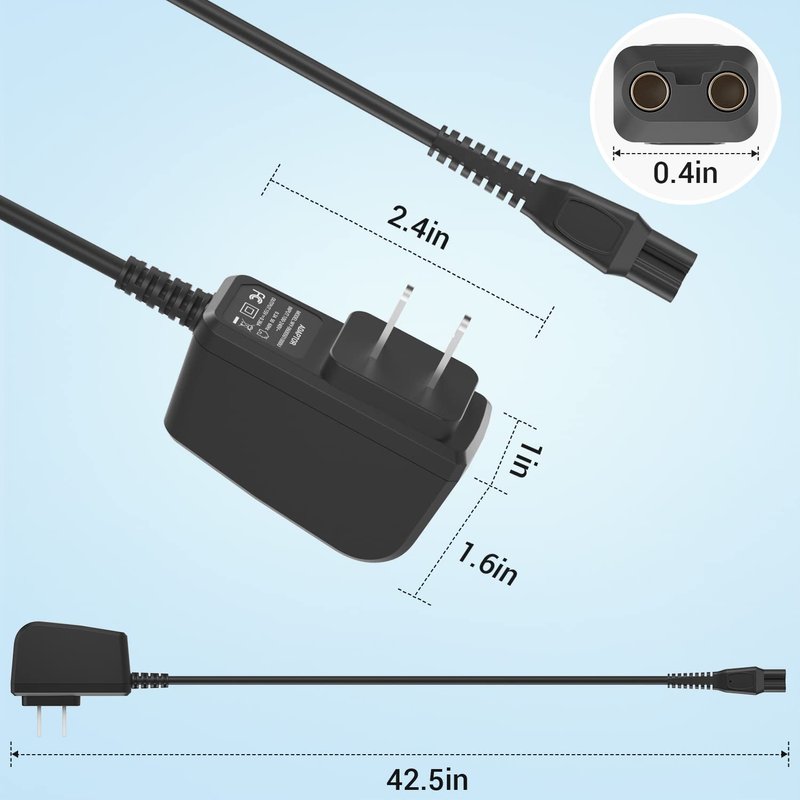 Replacement For philips Norelco charger cord Fit HQ8505 7000 5000 3000 Series 3500 mg5750 mg7750 S1560 Electric Shaver Razor, Aquatec, Arcitec, Multigroom Beard Trimmer & More 15V Power Cord Adapter