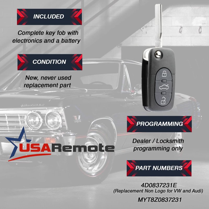 Replacement Keyless Entry Remote Flip Key Fob fits 1998 1999 2000 2001 VW Beetle, Golf, Jetta, Passat (HLO1J0959753F)
