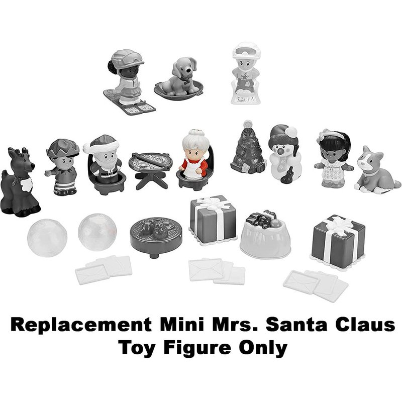 What’s included? Replacement 2019 Mini Mrs. Santa Claus Figure. This replacement Mini Mrs. Santa Claus Figure works with the Fisher-Price Little People 2019 Advent Calendar DGF96.