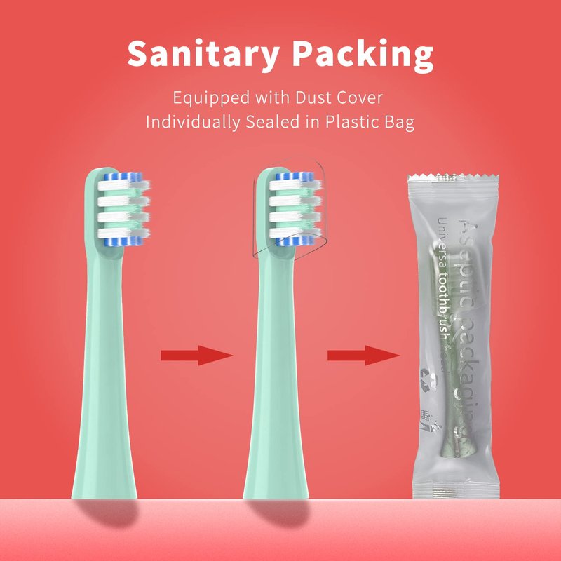 - 【Sanitary Packed】: Each toothbrush head equipped with dust cover then sealed into plastic bag and together packed in paper box. Three layers of protection avoid dust pollution during packing and transportation. Also, dust cover is perfect for travel.