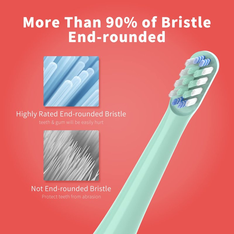- 【Teeth Protection】: 95%-98% top of bristle rounded before packaging. Just considering protecting teeth when brushing in high vibration. The teeth enamel would get worn if bristle was not rounded.