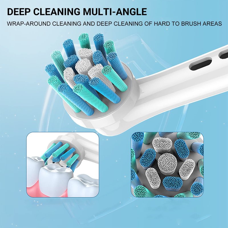 - 【Deep Cleaning Brush Heads】The slightly long bristles at the tip can reach the blind area of the mouth for comprehensive cleaning, fresh breath, prevention of tooth decay.