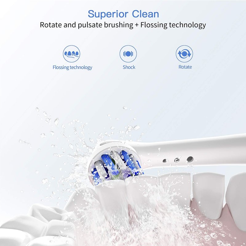 - ★【Superior Clean &Soft DuPont Bristles】 With the flossing technology, the high-low DuPont bristles toothbrush head is ideal for cleaning around sensitive and inflamed areas and protecting the gums from being damaged. Clinically proven to remove up to 7x more plaque along the gumline and in between teeth than a manual toothbrush.