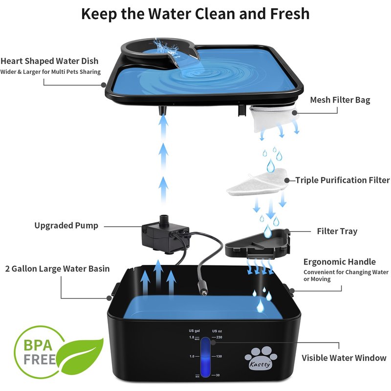 Replacement Water Pump for Kastty 2 Gallon Dog Water Fountains