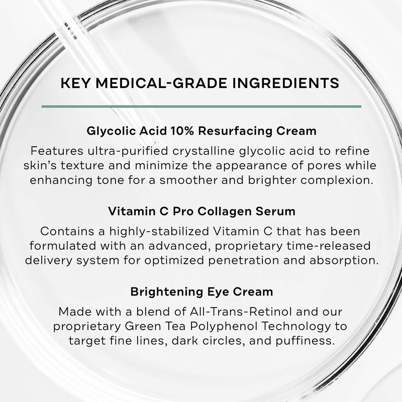 Replenix Discoloration Essentials 3 Step Brightening Medical-Grade Trial Kit (Set Includes Travel-Size Glycolic Acid Resurfacing Cream, Vitamin C Pro Collagen Serum, Brightening Eye Cream)