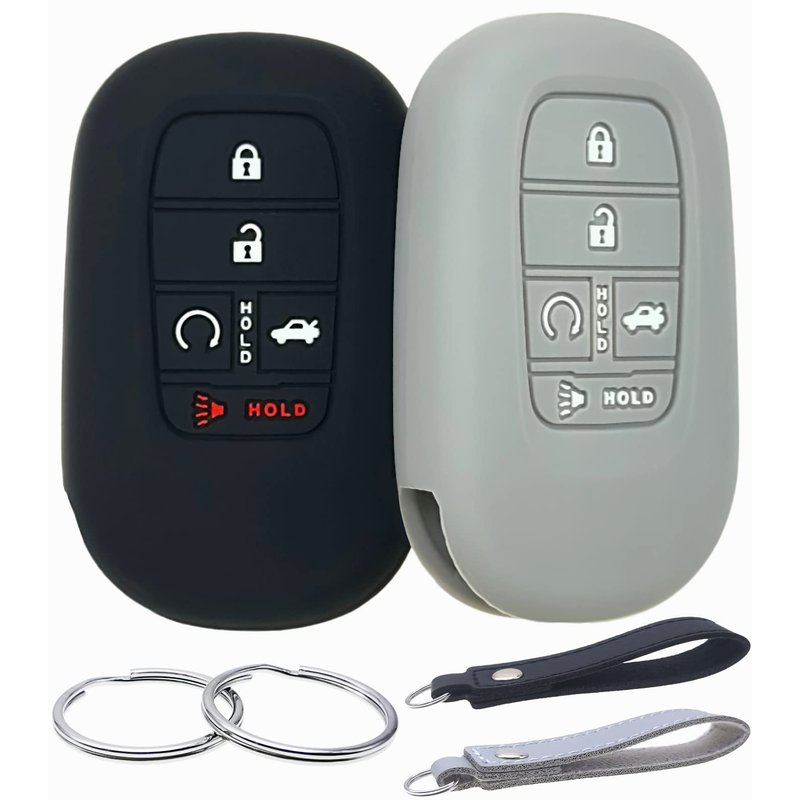 REPROTECTING Silicone Rubber Key Fob Cover Compatible with (5 Buttons) 2022 2023 2024 Honda Accord Civic HR-V CR-V Pilot Sport SI EX EX-L Touring (Black Grey)