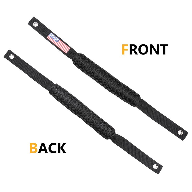 - HEAVY-DUTY--For Jeep Wrangler JL 4XE Gladiator JT grab handle is made of high-intensity paracord and quality metal grommets that can withstand more than 300 lbs. The handle is made of a two-color woven design, more comfortable and stylish.