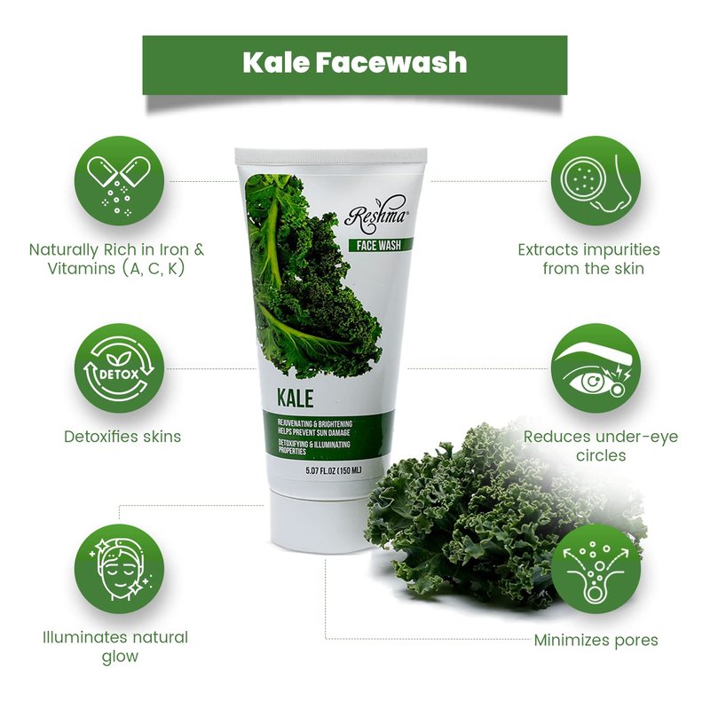 Reshma Beauty Kale Face Wash | Cleanser for All Skin Types & Dull Skin |Purifying and Hydrating| Enhances Natural Glow| Cruelty Free | Removes Make Up| For Daily Use - Cruelty Free(Pack of 1), 5.07 oz