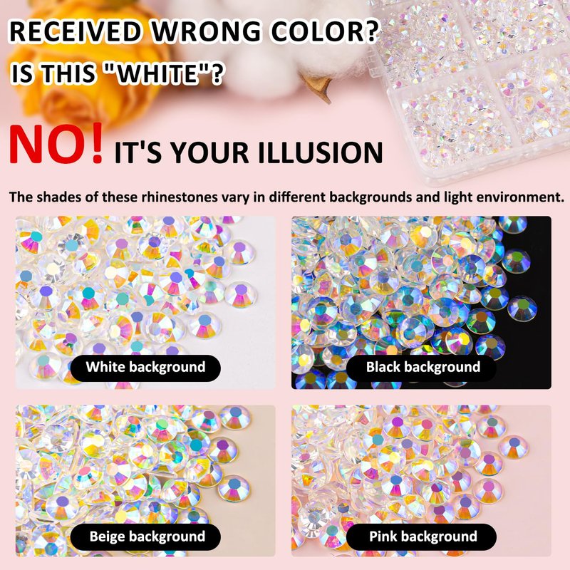 ⚪WHAT YOU WILL GET -- The package includes 1 box of flatback rhinestones with 12 grids in diffrent sizes:2mm x 2 grids, 3mm x 3 grids, 4mm x 3 grids, 5mm x 2 grids, 6mm x 2 grids. 1 tweezers for large size gems, 1 pickup pen for small size gems. 3 B7000 adhesive jewels glue for jewelry making.This rhinestone kit makes it easy for you to make any craft you like, and will bedazzle your artworks!⚪B7000 CLEAR GLUE FOR GEMS -- Our B7000 glue has strong adhesion and dries clear, non-toxic and harmless to the skin.The glue has a precision needle for easy application, initial cure time is 3-5 minutes and full cure time is 24 hours. The glue will have a slight overflow when first used, before use you can leave the glue head up for a few minutes to avoid overflow. After use, the needle needs to be wiped with an alcohol pad.⚪TIPS FOR USE -- Our flatback rhinestones are non-hotfix, need to use with glue.To apply the resin rhinestones, first, clean the surface of your crafts or your nail you wish to embellish. Then, apply the rhinestones with the appropriate glue and wait for them to dry. Once the glue is completely dry, it will stick firmly to your crafts,make your artwork more sparkling!Our store also offer a variety of colors, these colors will give your crafts more possiblities, more shiny color scheme.⚪WIDE APPLICATION -- These sparkling iridescent jelly crystals are perfect for creating dazzling looks. Use them for bedazzling DIY crafts like shoes, tumblers, mugs, bottles, phone cases, popsockets, scrapbooks, photo frames, diamond paintings, greeting cards, bags, glasses, guitars, keychains, hats, masks, hair clips, bracelets, wristbands, clothing, wedding dresses, and more. Apply it to what you want to bling!