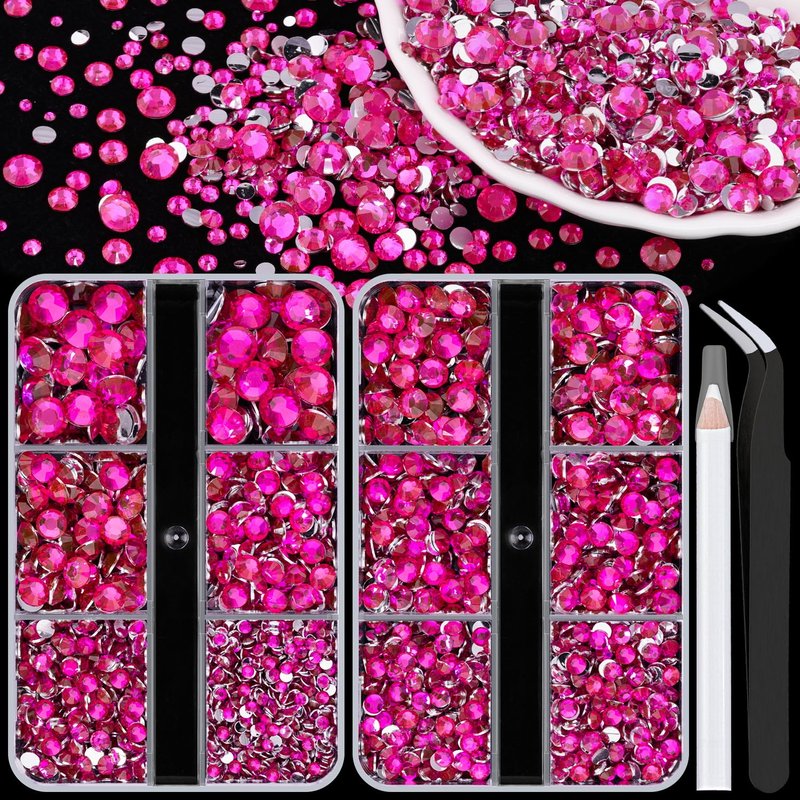 💎PACKAGE CONTENT -- This resin rhinestone package includes 2 boxes with 6 grids, featuring a variety of sizes: Box #1 contains 2mm x 1 grid, 3mm x 1 grid, 4mm x 1 grids, 5mm x 1 grids, and 6mm x 2 grids; Box #2 contains 3mm x 2 grids, 4mm x 2 grids, 5mm x 2 grids. 1 tweezers and 1 pickup pen are included for easily picking up of rhinestones. This set offers more large-sized gems, making it perfect for DIY craft decorations, eye makeup, face makeup and nail art.💎VIBRANT GEMS FOR CRAFT -- Made of choice resin, these rhinestones are lightweight, durable, and economical. Designed with perfect cutting facets, these high-quality flatback gems have a delicate and exquisite shine, enhancing the appeal of your crafts or nails with their vibrant colors. Our store also offers a variety of colors,these sufficient colors will make your crafts more sparkling.💎TIPS FOR USE -- Non-hot fix flatback gemstones require adhesive for nail art, crafts, or artwork design. We recommend using B7000 jewelry glue for DIY projects and UV / quick dry nail glue for nail art. To apply the resin rhinestones, first, clean the surface of your nails or the crafts you wish to embellish. Then, apply the rhinestones with the appropriate glue and wait for them to dry. (Please note that glue is not included.)💎WIDE APPLICATION -- These sparkling iridescent resin crystals are perfect for creating dazzling looks. Use them for face makeup, eye makeup, body art, 3D nail art or bedazzling DIY crafts like shoes, tumblers, mugs, bottles, phone cases, popsockets, scrapbooks, photo frames, diamond paintings, greeting cards, bags, glasses, guitars, keychains, hats, masks, hair clips, bracelets, wristbands, clothing, wedding dresses, and more. Apply it to what you want to bling!