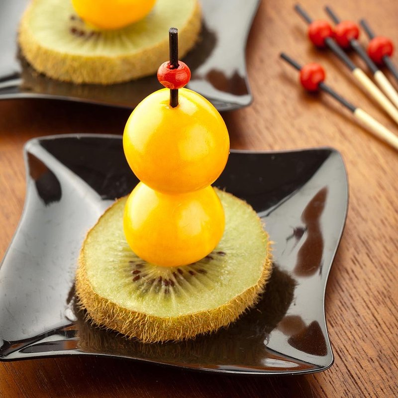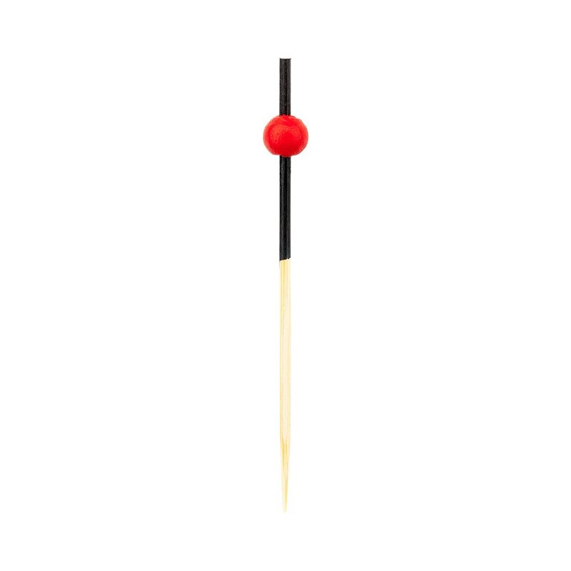 • UNIQUE, STYLISH ACCENTS: These two-tone bamboo picks feature a contrasting black tip and bright red bead to grab your customer's attention and effortlessly enhance your presentation.