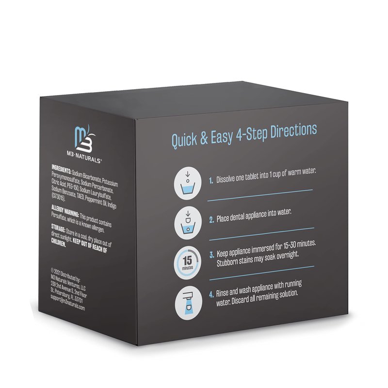- M3 Naturals Extra Strength Cleaning Tablets are laboratory tested working to restore clarity by removing unwanted odor and buildup in every corner of any oral dental appliance.*