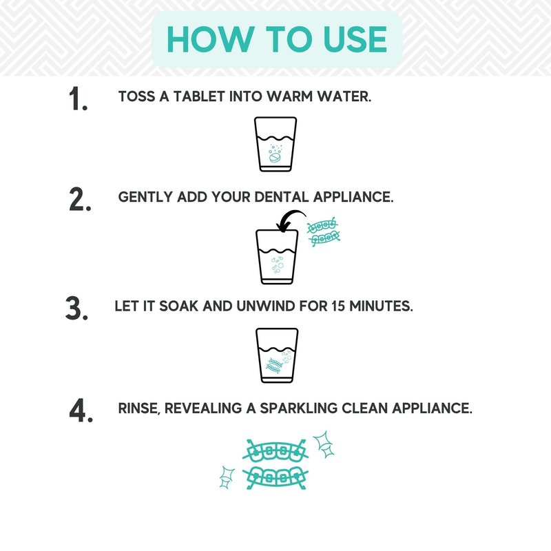 - EASY TO USE: Dissolve 1 tablet in warm water, add the appliance, soak for 15 mins or leave overnight