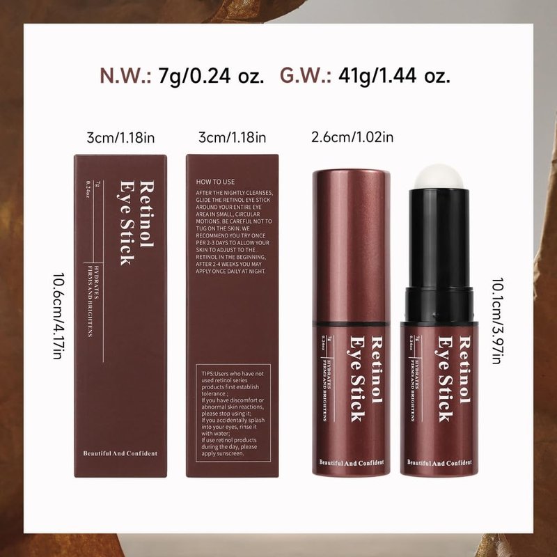 Retinol can promote metabolism, accelerate cell regeneration, help reduce the appearance of fine lines and wrinkles, and provide long-lasting moisturizing effects. The unique design of this eye cream stick allows the retinol component to penetrate deep into the eye skin, thereby maximizing its effectiveness.