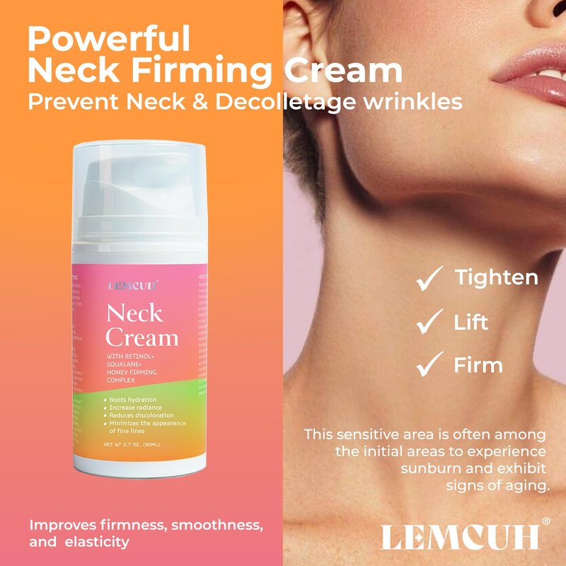 - Advanced Retinol Neck Firming Cream: Neck cream visibly improve the appearance of the Neck & Décolleté skin. The neck firming cream contains high-performance botanical ingredients in the retinol anti wrinkle aging neck cream work together in a multi-targeted formula to tighten, lift, and firm the skin's appearance. By reducing the appearance of wrinkles, fine lines, and sagging, improving elasticity, restoring collagen, moisturizer, retinol neck firming cream can help enhance the overall look and feel of the skin.