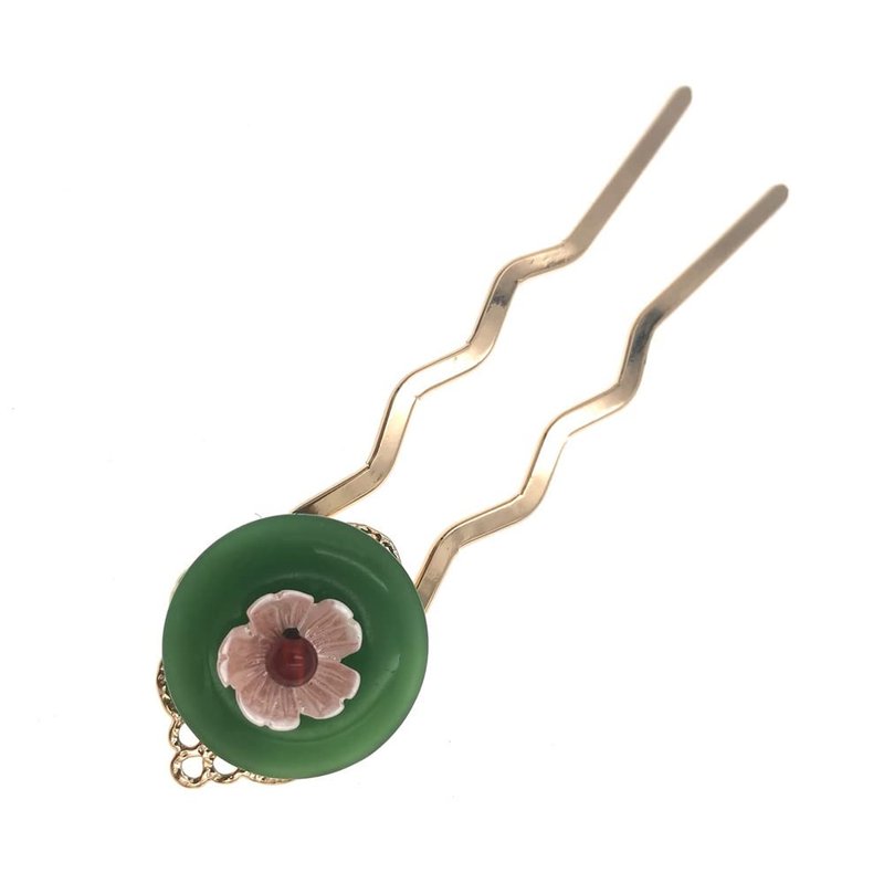 Retro Chinese Jade Flower Hair Stick, Hanfu Hair Chopsticks Hairpin Japanese kimono Hair Styling Hair Making Accessories for Women Bride Decor