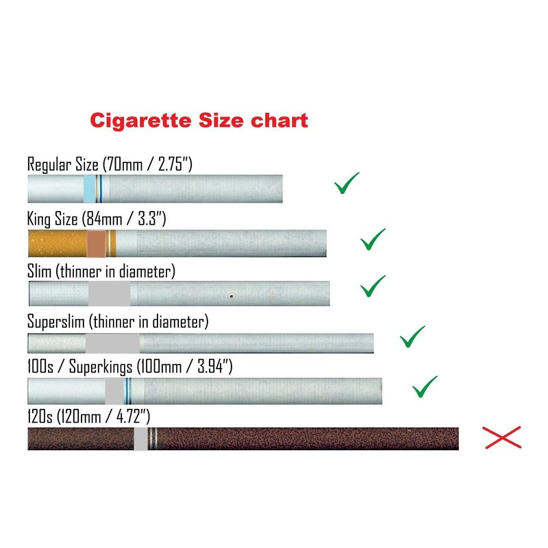 - This cigarette case is 100mm long and will hold up to 14 regular/king or 100's Size cigarettes, please check the chart in pictures.