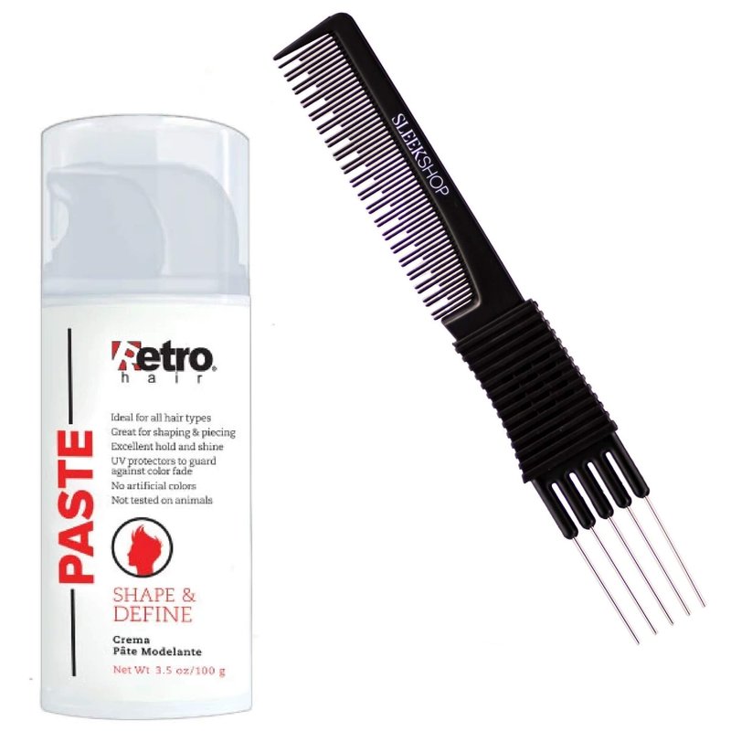 Retro Hair PASTE for All Hair Types, Shaping & Piecing (w/Sleek Premium Carbon Teasing Comb) Hold & Shine like gel, pomade, cream, clay (3.5 oz / 100 g (PACK OF 1))